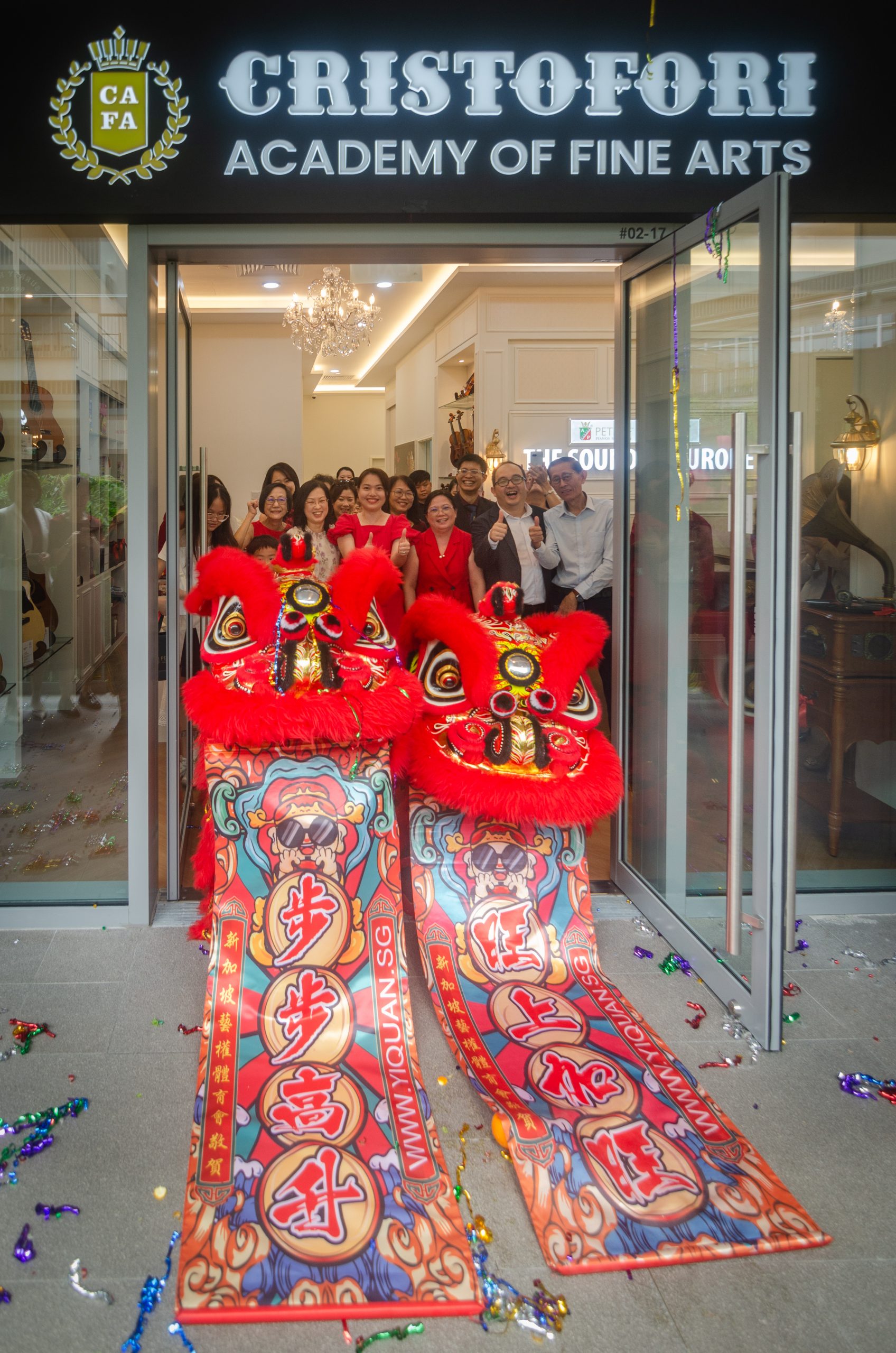 The festivities included a thrilling lion dance performance to usher in prosperity, and to set an energetic tone for the event. A series of musical performances showcased the illustrious Petrof P159 Bora piano, alongside captivating violin and guitar performances, immersing attendees in the enchanting sounds of Europe in a richly designed interior reminiscent of the parlors of Vienna or Paris – just like in the days of the great composers.